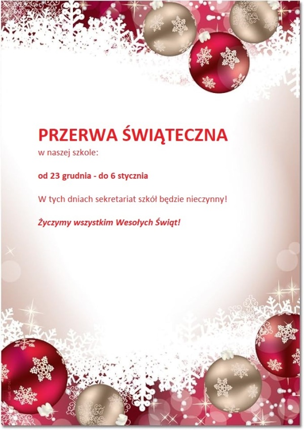 W dniach 23 - 30 grudnia sekretariat C.E. "Oświata" czynny w godzinach od 9.oo do 13.oo.